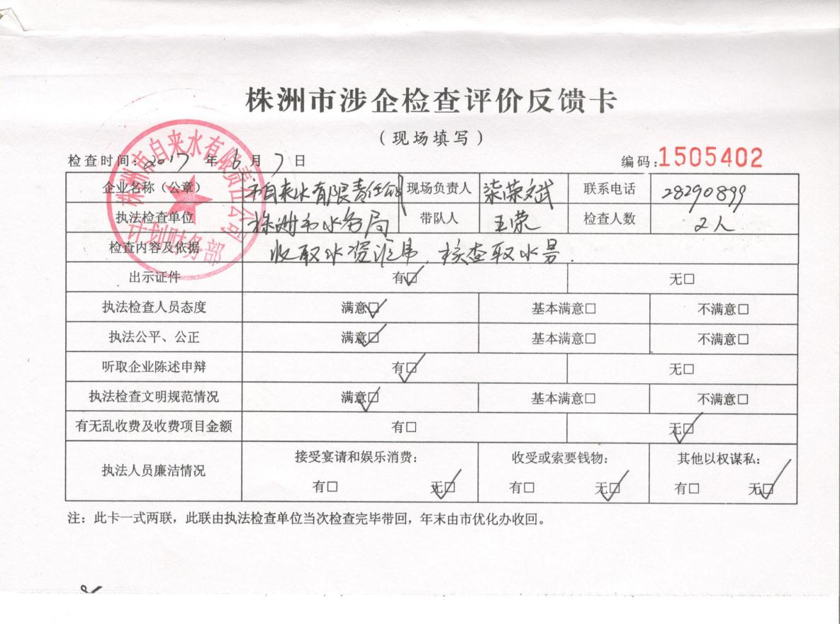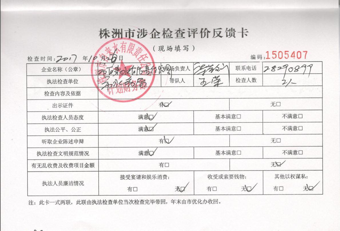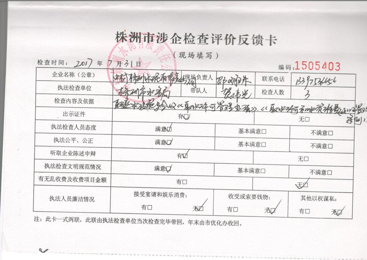 株洲市水务局涉企检查公示(2017年度)